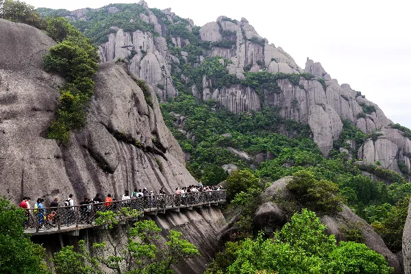 Taimu Mountain is the essence of Taimu Mountain Scenic Area, with a tourist area of 24.6 square kilometers. Here, the peaks are steep, the rocks are strange, the caves are secluded, and the clouds are misty, famous for the four wonders of "steep peaks, strange rocks, secluded caves, and misty clouds", and known as the "Fairy Capital on the Sea". The 360 rocks in the mountain have different shapes, lifelike, like the sculptures of abstract masters, among which the Couple Peak, Golden Turtle Climbing the Wall, and Nine Carps Facing the Sky are the most famous. The area is divided into tourist areas such as Yingxian Terrace, Gourd Cave, Jiuli Peak, Yipianwa, Xiangshan Temple, Moxiao Peak, Guoxing Temple, Tianmen Ridge, and Yuhu Nunnery.